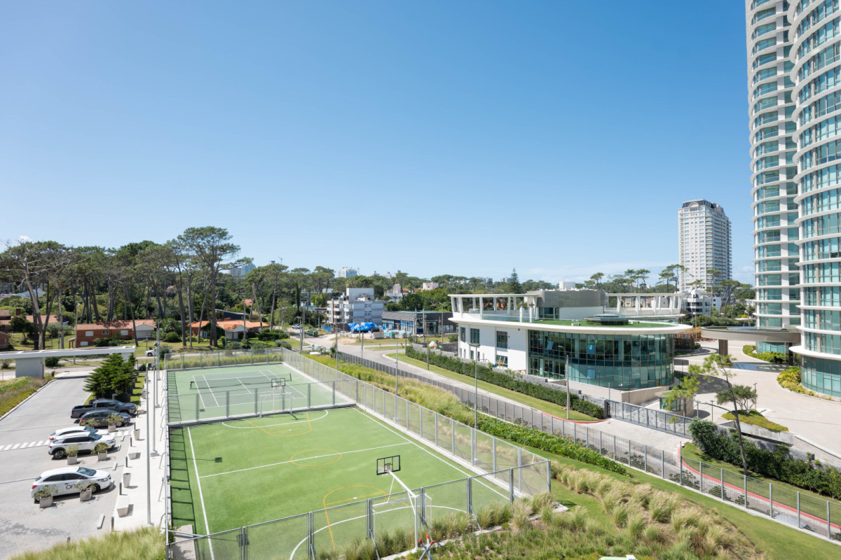 Situado en la parada 18 de la Rambla Mansa, en Punta del Este, el edificio se desarrolla sobre una manzana de 14.000 m² en primera línea al mar, ofreciendo un entorno de amplitud, privacidad y contacto directo con la naturaleza.